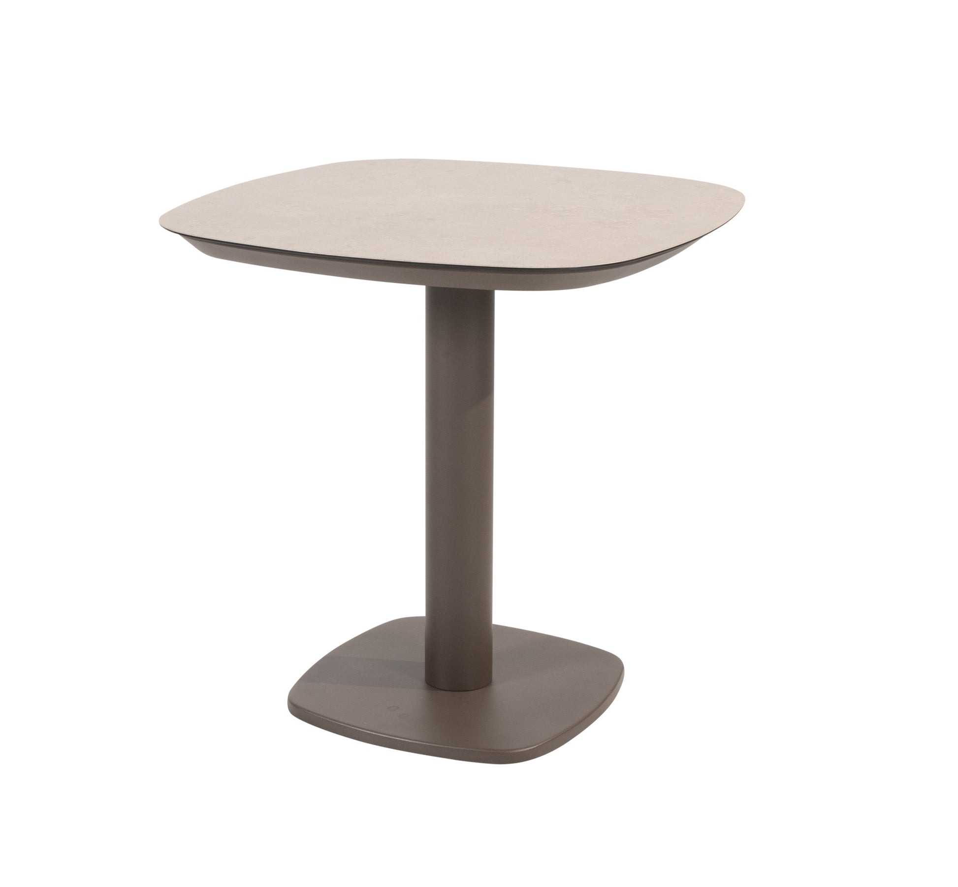 Bordplaten er laget i keramikk, et ekstremt slitesterkt materiale med høy motstand mot riper, varme, flekker og fukt. Den ikke-porøse overflaten gjør bordet enkelt å rengjøre, samtidig som det tåler daglig bruk utendørs uten samme vedlikeholdsbehov som tradisjonelle naturmaterialer.